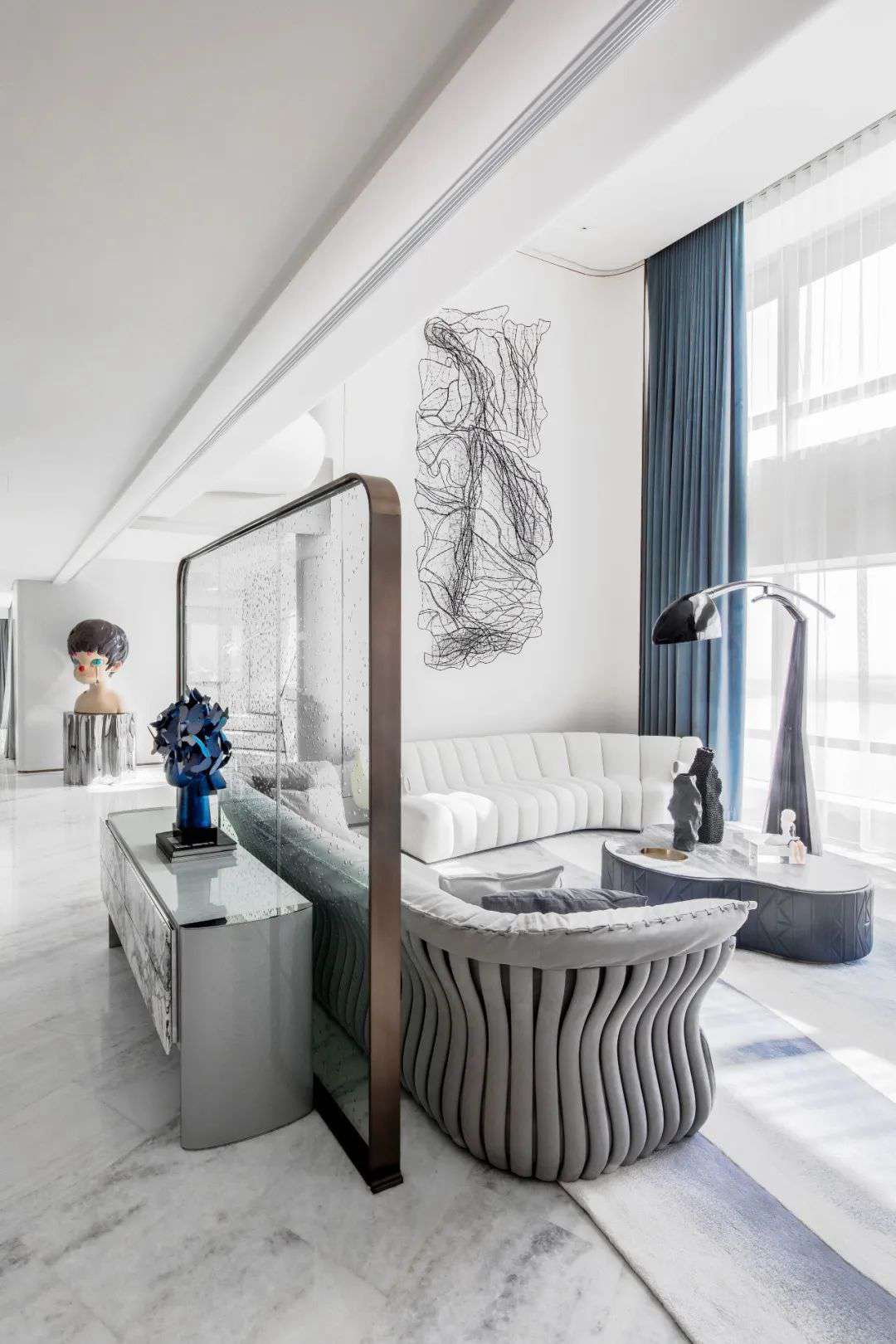 與珠海·仁恒濱海中心初邂逅時(shí),設(shè)計(jì)的命題是「一系列特定」:關(guān)乎城市,關(guān)乎區(qū)位,關(guān)乎建筑條件,關(guān)乎時(shí)代思潮與居者的思想,關(guān)乎銷售的商業(yè)邏輯。當(dāng)設(shè)計(jì)介入之后,「一系列特定」召喚一場(chǎng)「回歸」:海洋從環(huán)境席卷至造型,化為海浪拍打至室內(nèi),海的空間性從內(nèi)心深處抵達(dá)無(wú)限廣延。