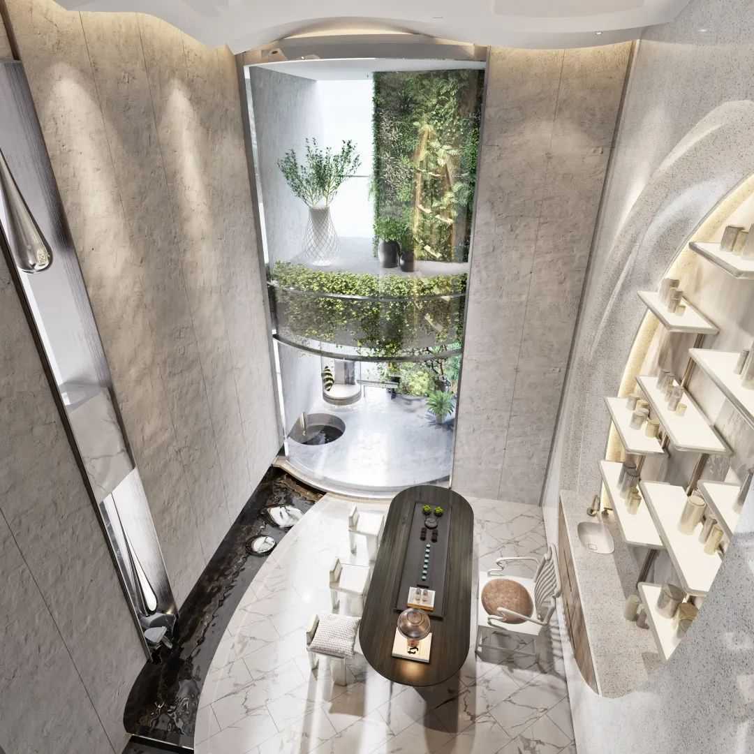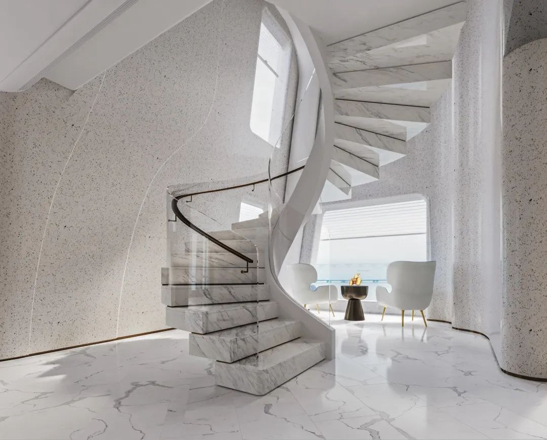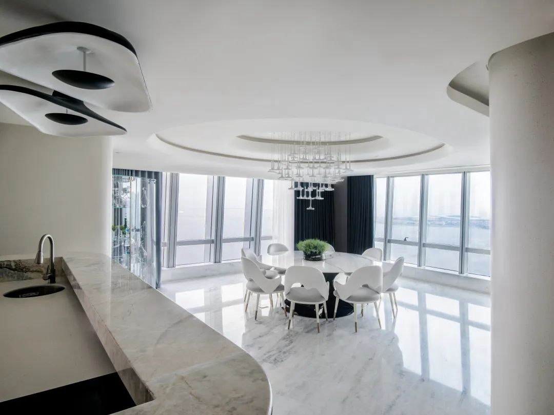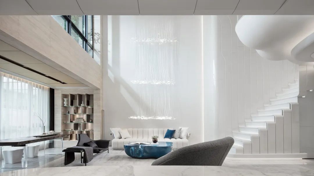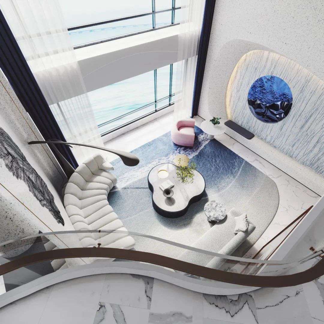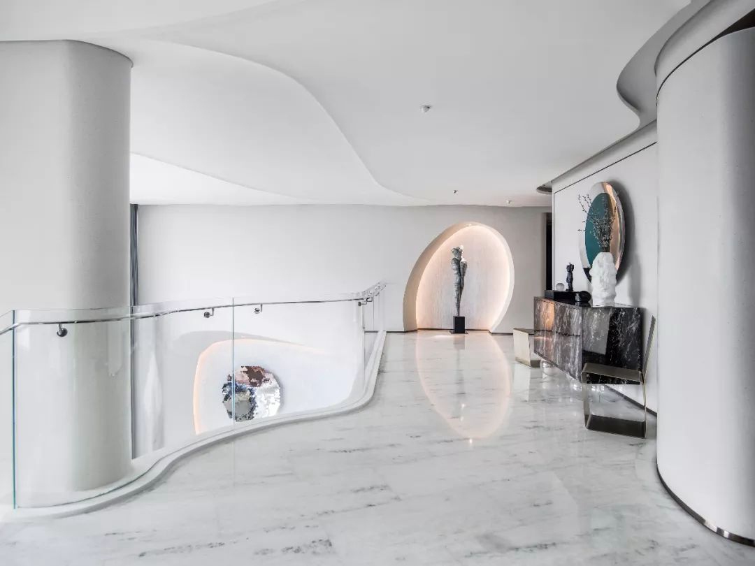 與珠?!と屎銥I海中心初邂逅時(shí),設(shè)計(jì)的命題是「一系列特定」:關(guān)乎城市,關(guān)乎區(qū)位,關(guān)乎建筑條件,關(guān)乎時(shí)代思潮與居者的思想,關(guān)乎銷售的商業(yè)邏輯。當(dāng)設(shè)計(jì)介入之后,「一系列特定」召喚一場(chǎng)「回歸」:海洋從環(huán)境席卷至造型,化為海浪拍打至室內(nèi),海的空間性從內(nèi)心深處抵達(dá)無(wú)限廣延。