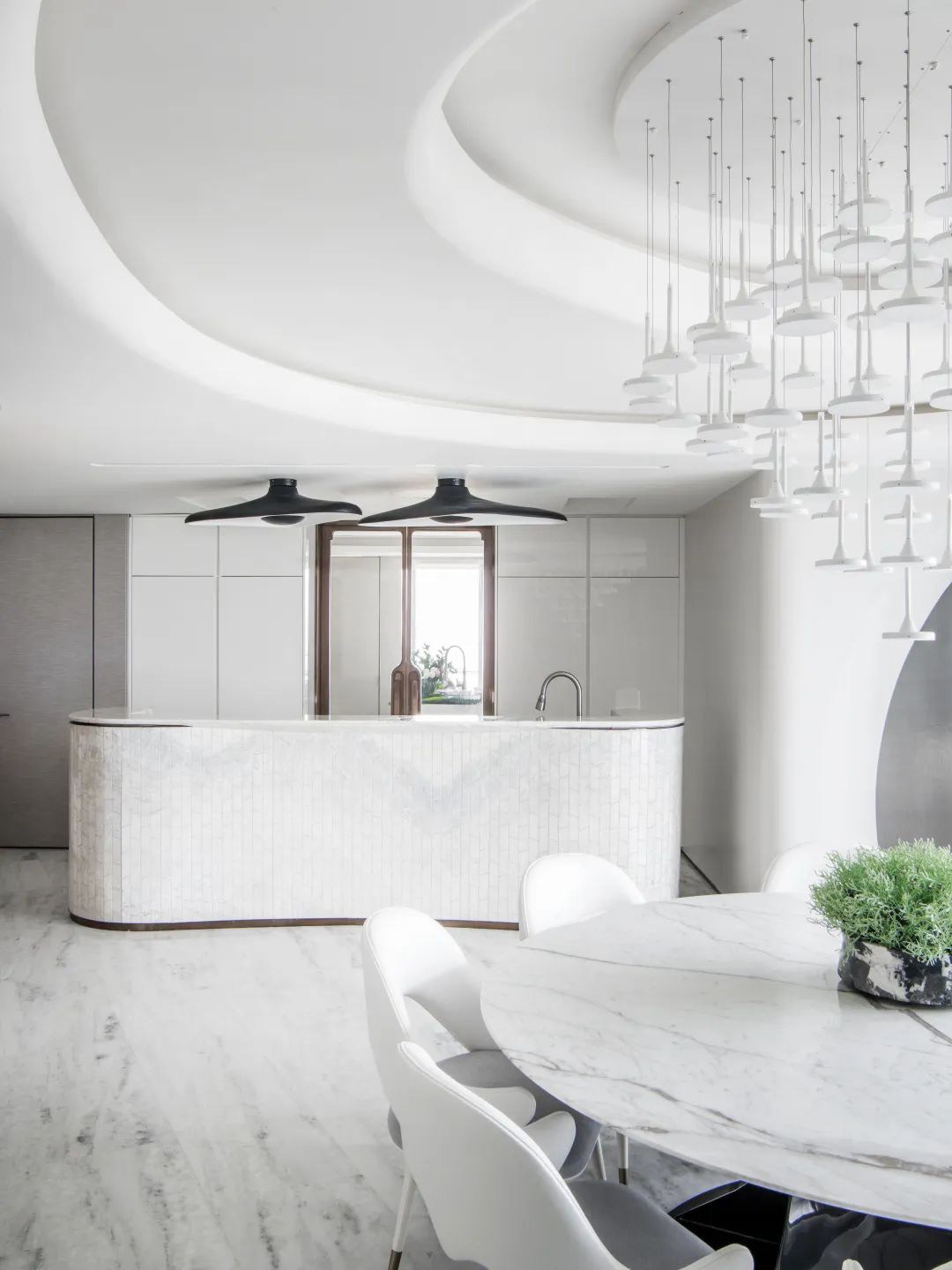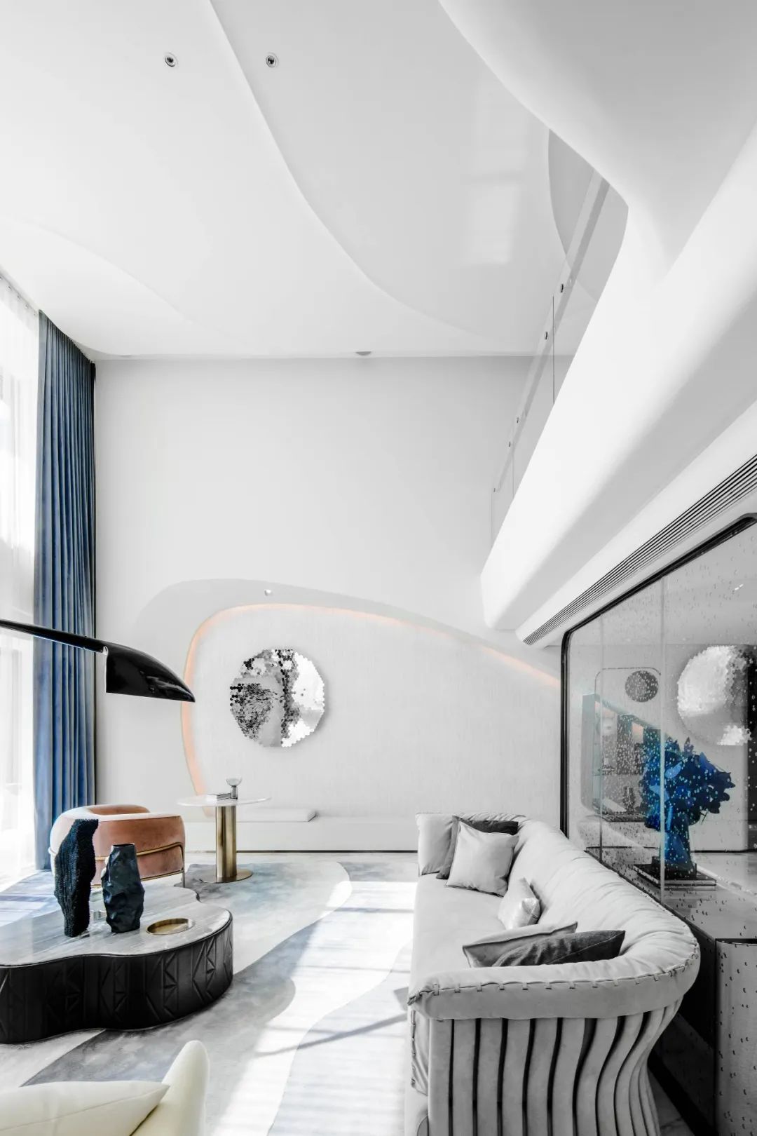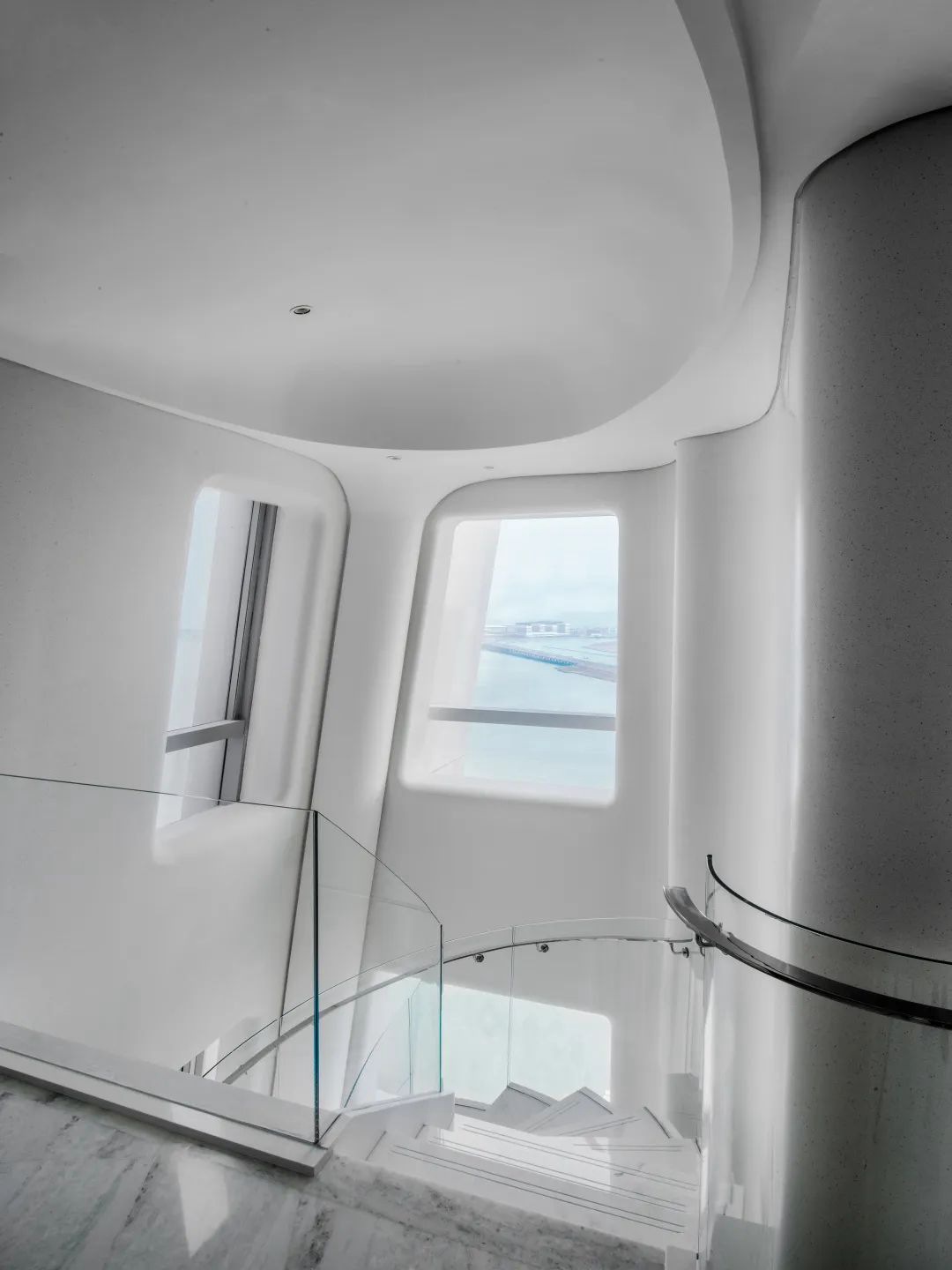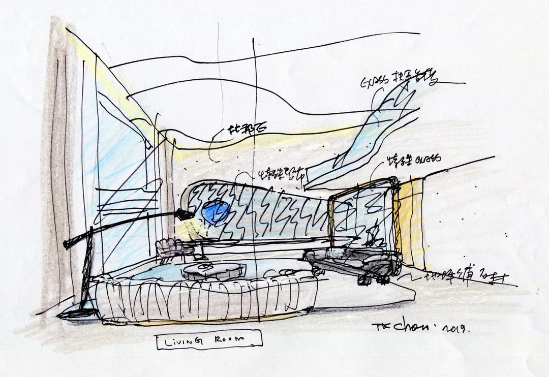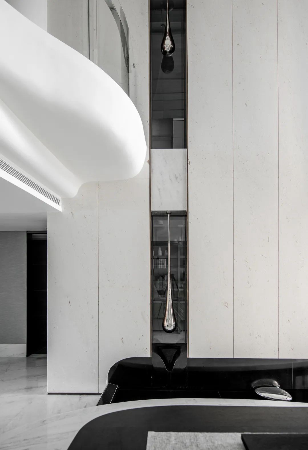 與珠?!と屎銥I海中心初邂逅時(shí),設(shè)計(jì)的命題是「一系列特定」:關(guān)乎城市,關(guān)乎區(qū)位,關(guān)乎建筑條件,關(guān)乎時(shí)代思潮與居者的思想,關(guān)乎銷售的商業(yè)邏輯。當(dāng)設(shè)計(jì)介入之后,「一系列特定」召喚一場(chǎng)「回歸」:海洋從環(huán)境席卷至造型,化為海浪拍打至室內(nèi),海的空間性從內(nèi)心深處抵達(dá)無(wú)限廣延。