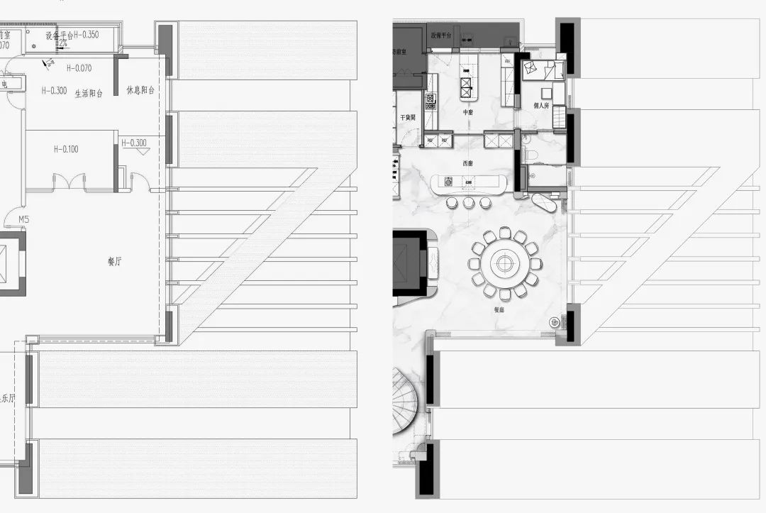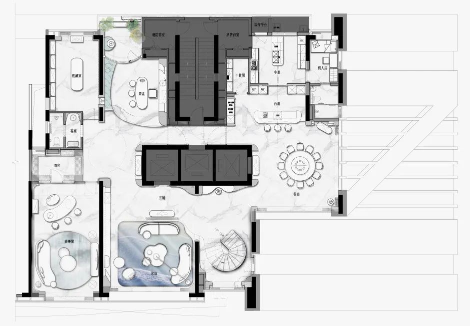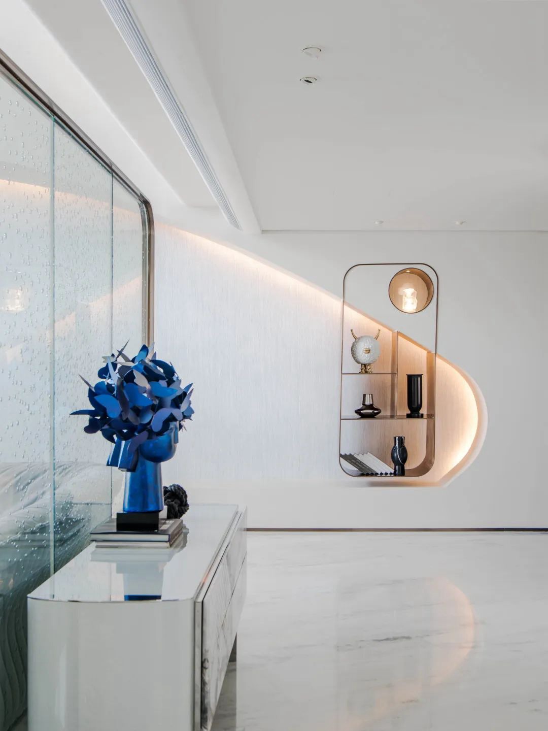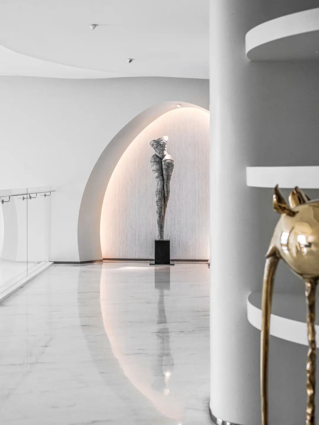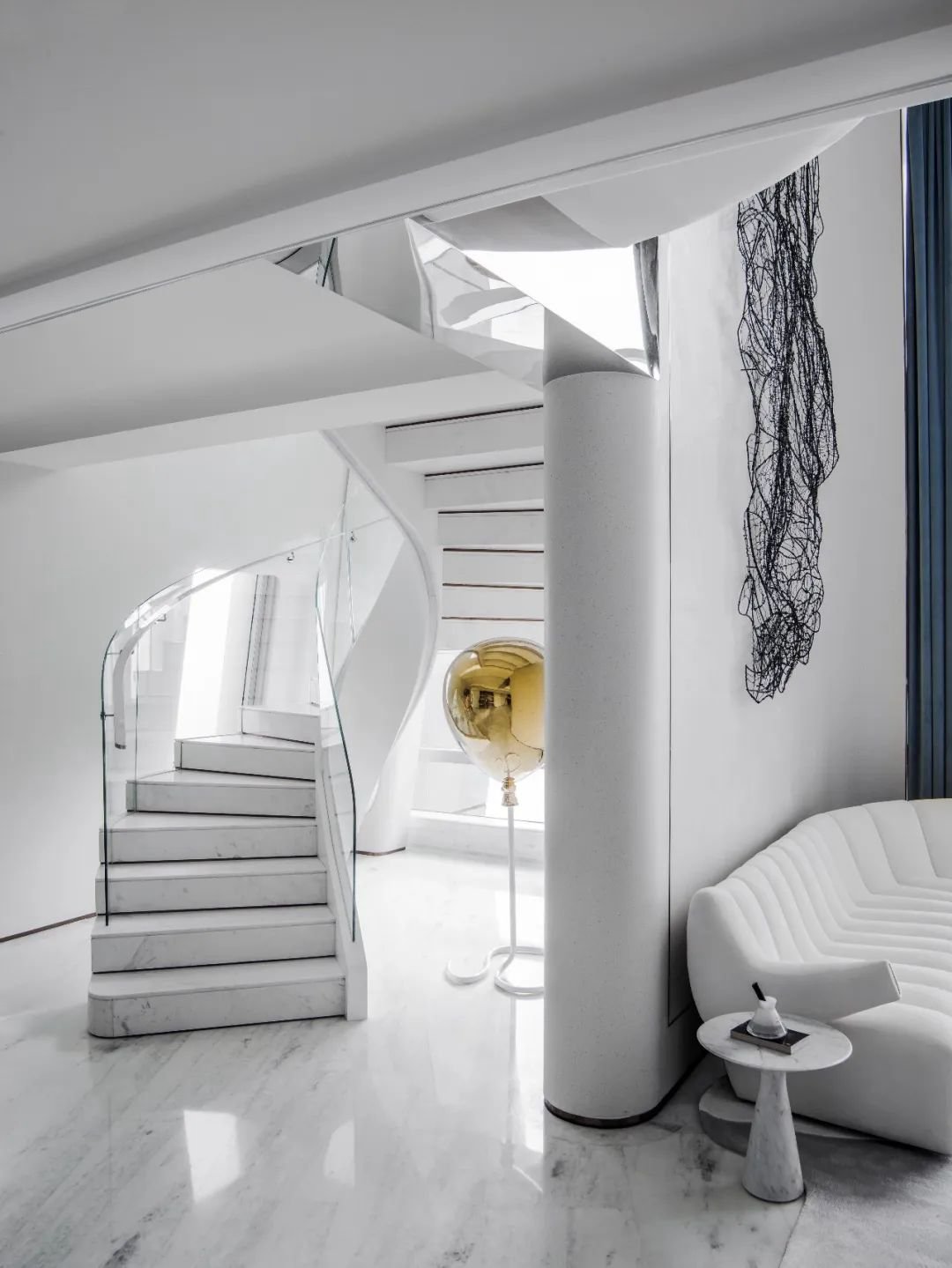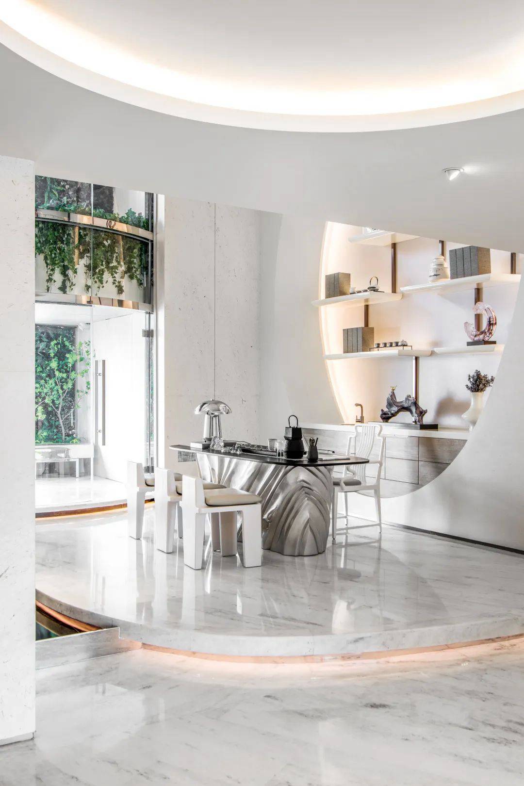 與珠?!と屎銥I海中心初邂逅時(shí),設(shè)計(jì)的命題是「一系列特定」:關(guān)乎城市,關(guān)乎區(qū)位,關(guān)乎建筑條件,關(guān)乎時(shí)代思潮與居者的思想,關(guān)乎銷售的商業(yè)邏輯。當(dāng)設(shè)計(jì)介入之后,「一系列特定」召喚一場(chǎng)「回歸」:海洋從環(huán)境席卷至造型,化為海浪拍打至室內(nèi),海的空間性從內(nèi)心深處抵達(dá)無(wú)限廣延。