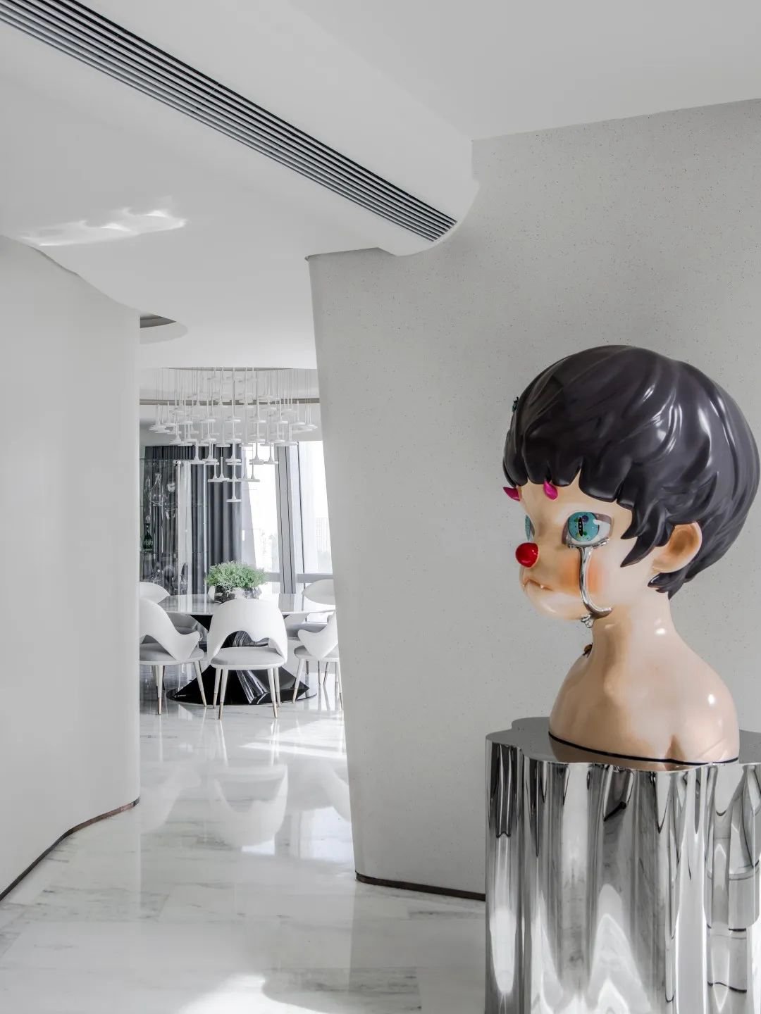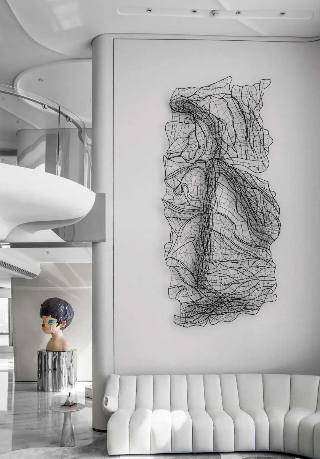 然而藝術(shù)品是孤獨(dú)的,唯有設(shè)計(jì)能擁抱它。在濱海中心,一系列的藝術(shù)品即一系列情感喚醒的觸發(fā)點(diǎn),藉由設(shè)計(jì),圍繞社交核心動(dòng)線徐徐鋪陳開來(lái)。藝術(shù)品的選擇圍繞一個(gè)主題:童趣,力圖將人帶離現(xiàn)實(shí)的煩擾,重新?lián)Q上孩子的瞳孔看待世界。