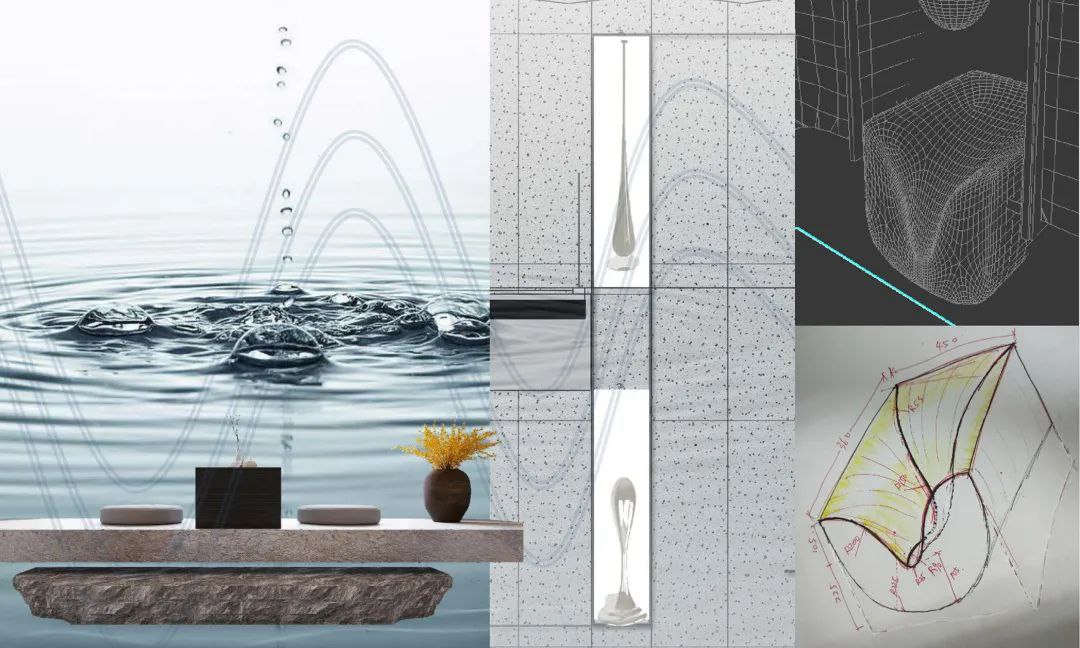 主要材料:人造石、魚肚白石材、鵝毛灰石材、夢(mèng)幻白玉石材、杷檀木皮、不銹鋼